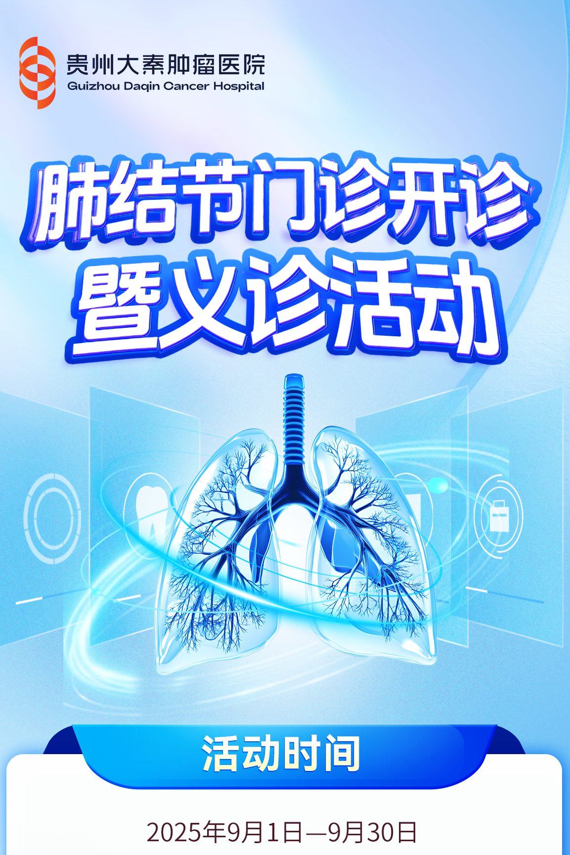为帮助居民守护肺部健康,排除肺癌/肺结节等健康隐患,贵州大秦肿瘤医院于9月1日正式开设肺部结节及肺部肿瘤联合诊治(MDT)门诊,同时开展义诊活动!肺部结节和肺部......